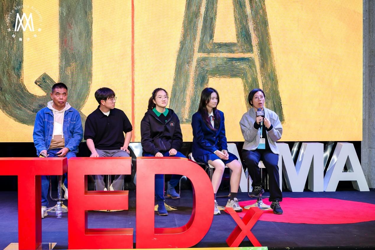 活动现场气氛热烈,同学们与嘉宾展开了热烈且深入的互动交流。同学提问内容聚焦心理健康、设计创作与商业价值的平衡,以及人工智能对学习方式与社会发展的影响,并就“AI是否会让人变得更加孤独”等议题展开了富有思辨性的讨论。活动尾声,万科梅沙书院校长窦连辉为演讲嘉宾与同学颁发了TEDxYouth@VMA演讲活动纪念证书,感谢他们的参与。
