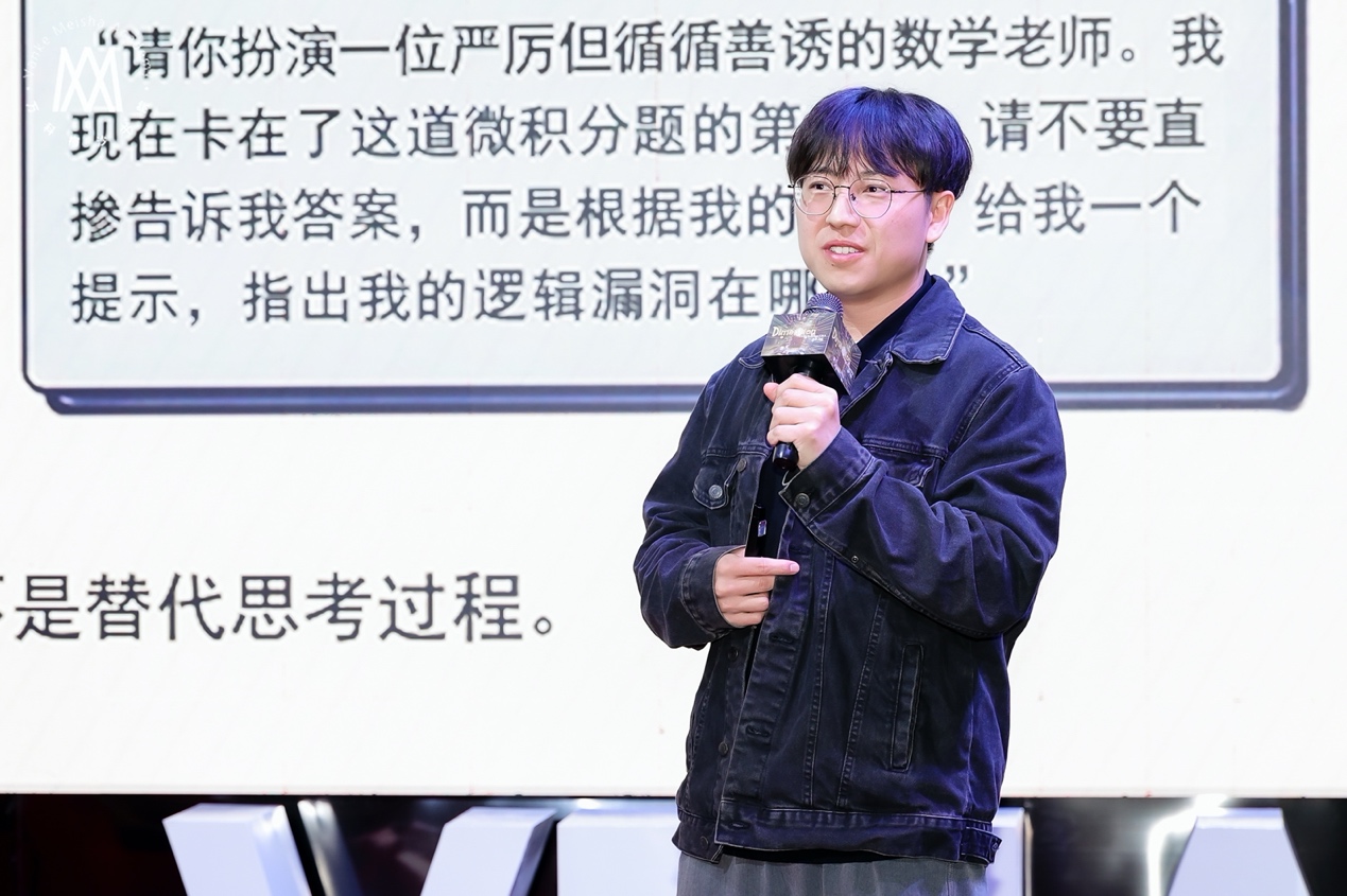 他分享了与AI高效沟通的秘诀:不用讲烦琐的礼仪,重点要清晰、精准。比如做数学题时,与其让AI直接给答案,不如让它扮演“严厉的老师”,指出解题步骤中的逻辑漏洞。他还谈到AI带来的“语言升维”,例如法语的“Tu me manques”(你从我这里缺失了)与中文的“我想你”,背后是不同的认知维度,而AI能打破语言壁垒,构建起跨文化的“数字通天塔”。