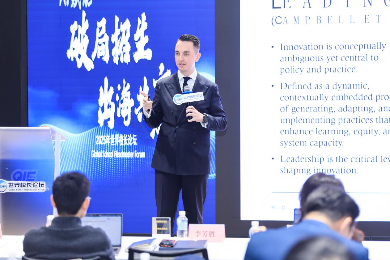 上午环节中,深圳市南山区教育局原局长刘根平探讨“AI时代教学生态系统的范式革命”,西安梁家滩国际学校校长刘莉聚焦“创新引领教育”,深圳羽迹科技CEO郭睿解析“AI时代学校如何持续向学生与家长传递价值”。北京稻香湖校长辛颖围绕“解锁天赋潜能”展开分享,天津光华教育集团总校长张义宝阐述数智时代外国语学校的“两化”办学实践,天津大学校长助理肖松山提出“人机合一,跨界融合”的大学发展路径,香港大学教授Paul Campbell则从文化、可信度与使命角度探讨AI时代的学校领导力。