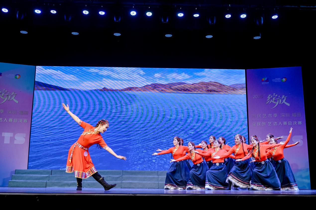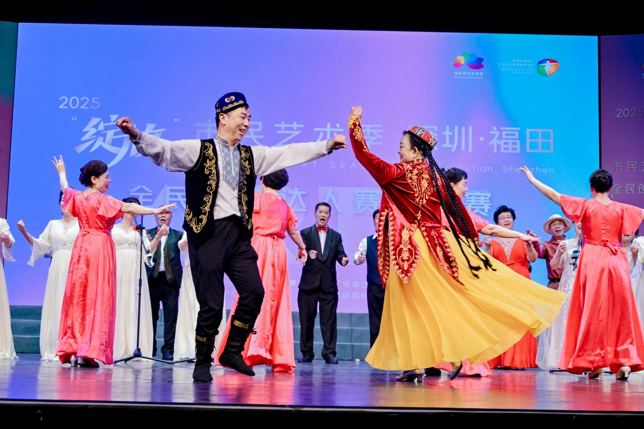 总决赛舞台上,艺术之花尽情绽放。节目形式丰富多元,涵盖独舞、群舞、独唱、合唱、昆曲、朗诵、模特秀、非遗剪纸服饰秀等多个类别。既有《龟兹乐舞》《花腰彝的海菜腔》《草原的脉动》等充满民族特色的演绎,也有《我乃哪吒》这样的原创佳作,更有《牡丹亭·游园》的昆曲经典与非遗剪纸服饰秀的传统文化呈现。枫叶合唱团带来的《福田人的欢乐时光》以温暖的表演唱形式,用三句生动台词搭配录音演绎,勾勒出福田市民安居乐业的幸福图景;陈晓芬的朗诵《深圳,你锁住了我》饱含深情,道尽了深圳人对这座城市的眷恋与坚守,引发全场观众强烈共鸣。选手年龄跨度广泛,上至退休长辈从容登台,下至孩童展现童真风采,每一段表演都饱含对艺术的热爱与执着,赢得现场观众阵阵掌声。