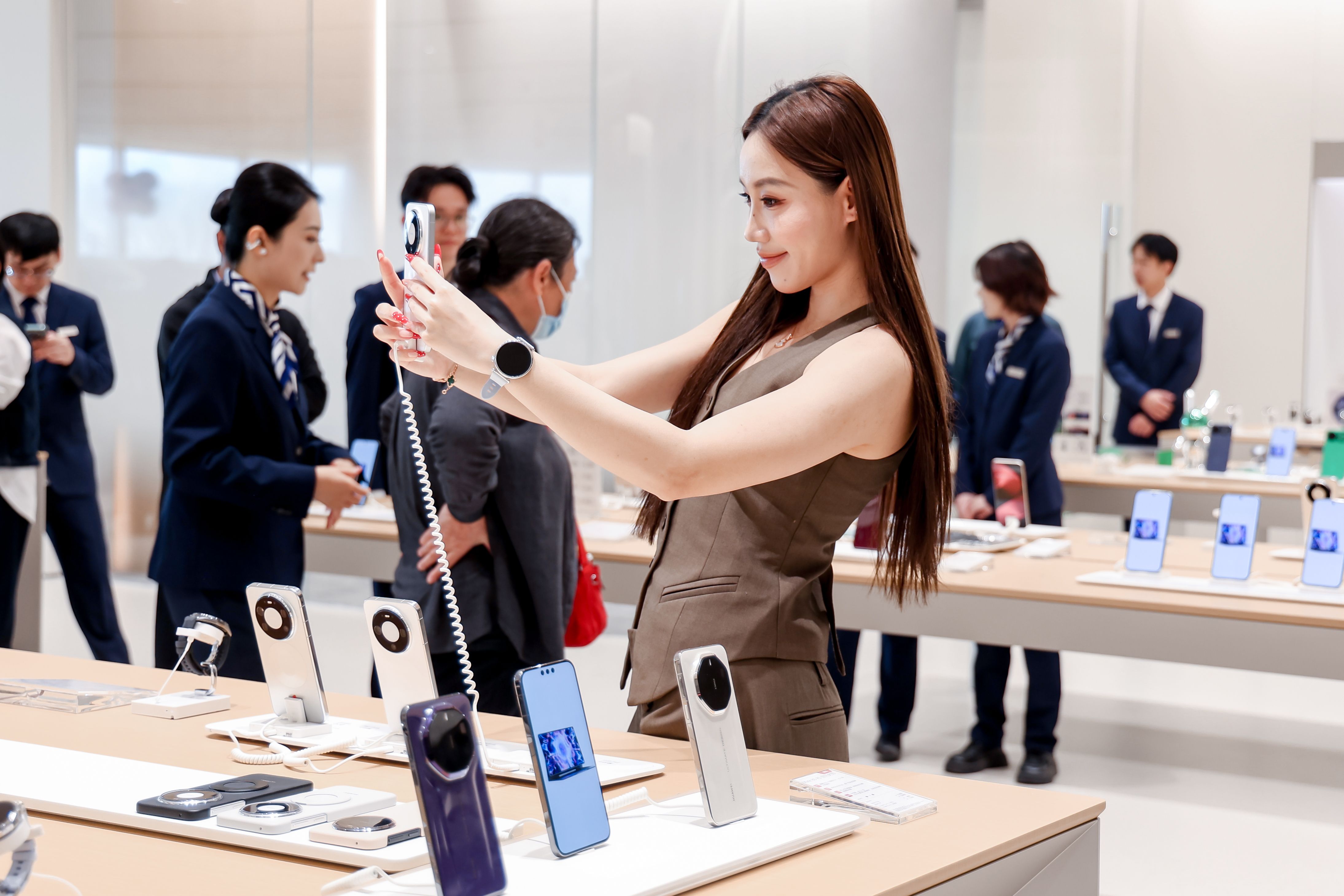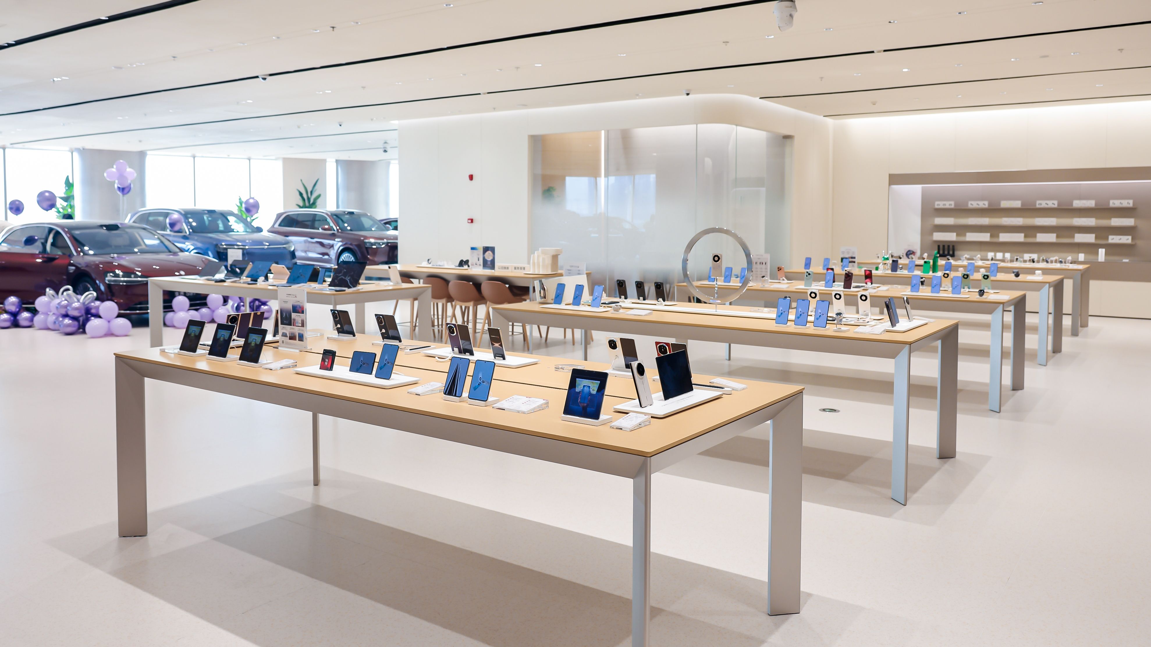 店内布局与海滨长廊自然衔接,顾客可在落地窗畔休憩观景,亦能步入户外公园漫步骑行,体验“山海相拥”的独特格调。作为华南地区规模领先的华为智能生活馆之一,它不仅是一座科技体验空间,更成为融合艺术打卡、自然互动与智慧生活的城市新地标。