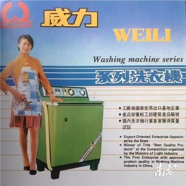 从农机厂技术研发起步,靠着拆解船用零件摸索技术,威力不仅造出中国第一台拥有自主技术的单缸洗衣机,更率先推出绿壳、铝合金外壳的大容量洗衣机,在那个“三转一响”(自行车、缝纫机、手表和收音机)尚且紧俏的年代,成为一机难求的“新三件”(电视机、电冰箱、洗衣机)之一。