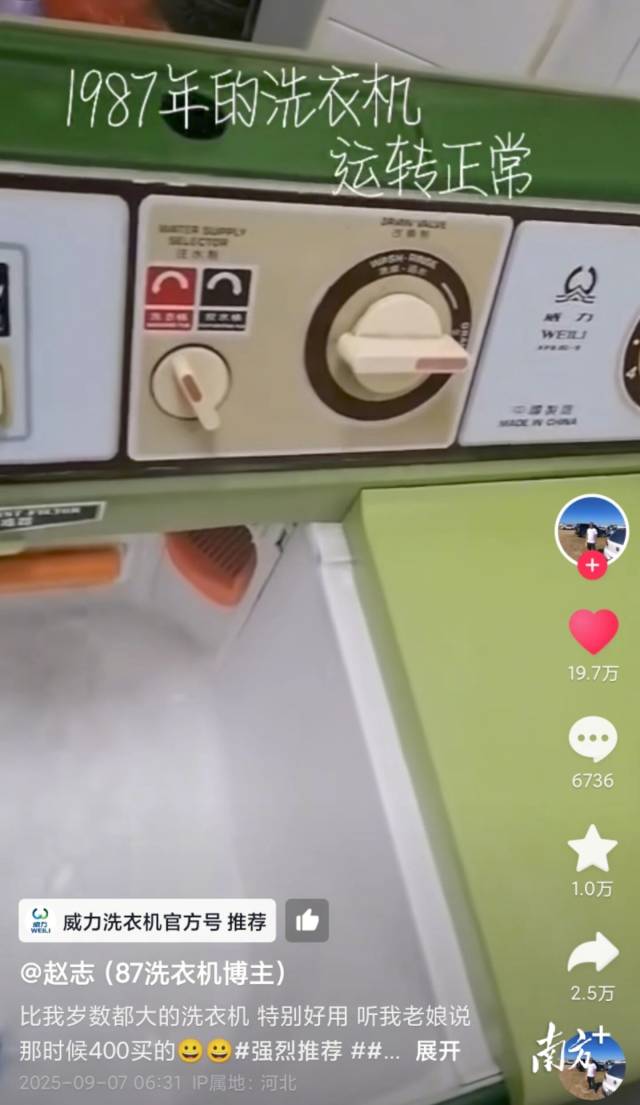 “38年前的威力洗衣机还能正常运行!”近日,河北一位网友发布的短视频引发全网热议。视频中,这台产自广东中山的威力洗衣机外观虽显斑驳,内胆转动却依旧强劲。厂家留意到这段视频后,跨省为这位网友送上了一台价值3000元的新款洗衣机。