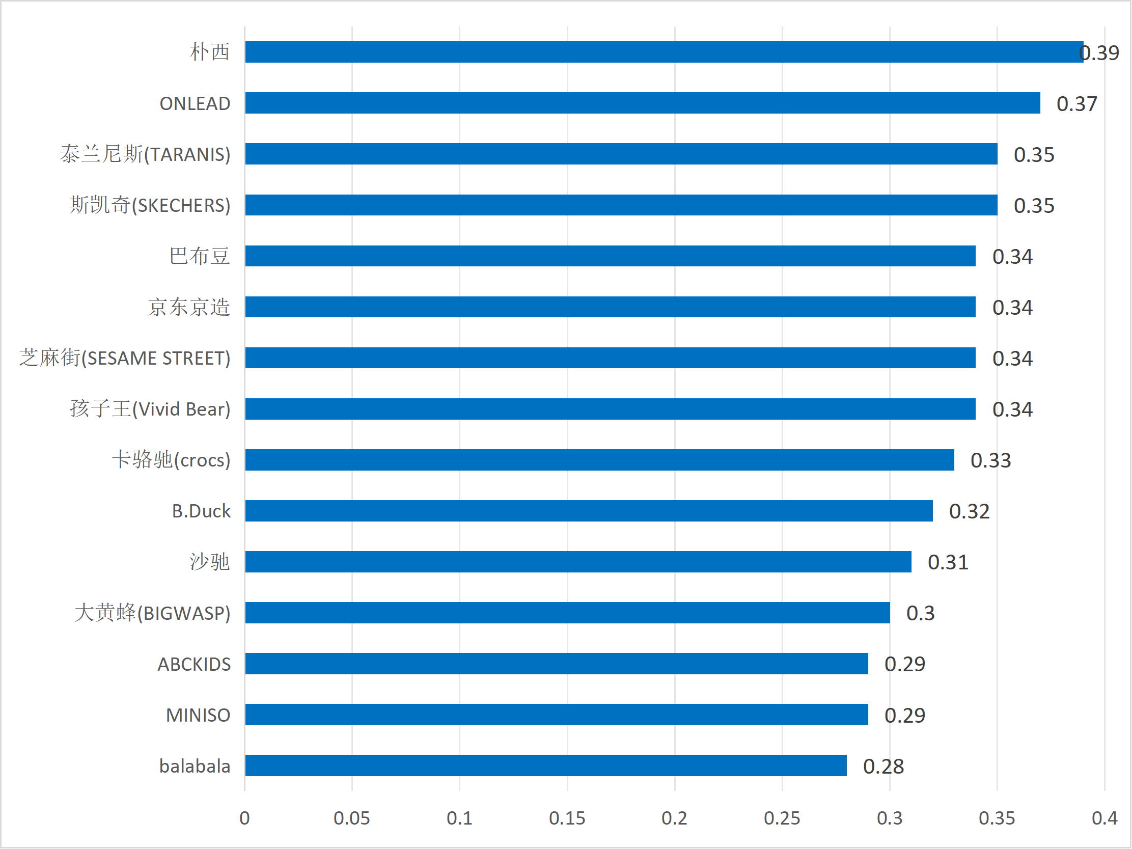 防滑性能方面,15款儿童洞洞鞋样品的湿态动摩擦系数介于0.28~0.39之间,建议消费者在涉水环境及易滑地面等情境下,尽量选择湿态动摩擦系数较高的产品。