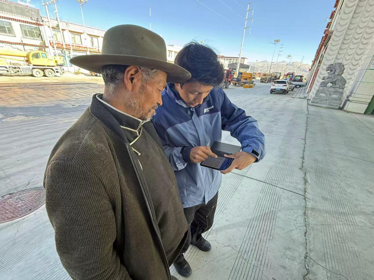 但考虑到高原上不少老年农牧民不熟悉智能手机操作,这群太保农险人又主动做起了科技与农牧民之间的“赋能者”。他们带着手机手把手教老人操作APP,用藏语耐心讲解每一个步骤:“阿爸,你看,点击这个红色的‘报案’按钮,再拍几张地里的照片传上去,我们就收到消息了。”遇到视力不好的老人,他们还会把字体调大,逐字逐句念给老人听。