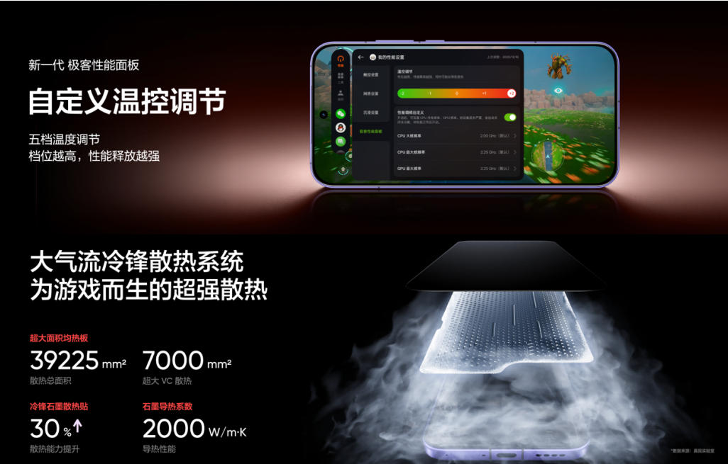 39225mm²气流冷锋VC散热系统覆盖65%机身面积,配合GT性能引擎的AI调度算法,使《原神》60帧重载场景下机身最高温度控制在41.2℃。相关电竞实验室给出评价——这种将硬件潜力彻底释放的思路,标志着电竞手机从“性能堆料”进入“精准调控”的新阶段。