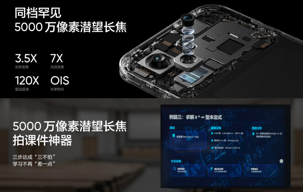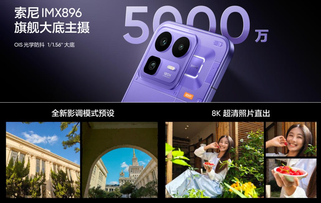 拍摄方面,真我Neo8搭载同档唯一的50MP超光影潜望长焦,3.5倍光学变焦与7倍无损变焦,最高支持120倍超清变焦,带来价位段罕见的望远能力,既能拍远也能拍清。潜望长焦还能化身“拍课件神器”,全面解决教室后排拍摄投影课件的痛点场景。人像拍摄方面,多焦段人像镜头覆盖从1倍到4倍经典人像焦段,带来海报级超清人像照片。主摄方面,搭载1/1.56"索尼IMX896传感器,支持8K超清直出与全新影调模式,可自定义色彩、锐度、颗粒等参数。