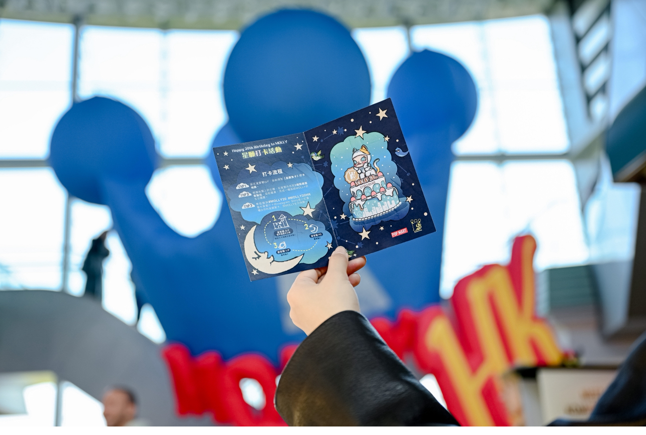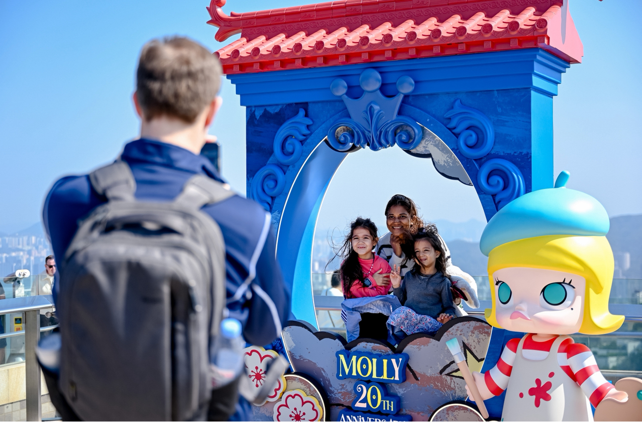 为庆祝MOLLY二十岁生日,香港将整座城市化为一场盛大的庆典。泡泡玛特联合香港旅游发展局,共同发起“MOLLY20周年线下企划——追溯一颗不变的星”文旅合作项目,从太平山顶出发,让MOLLY的足迹照亮全港地标。这段以IP串联的旅程,不仅加深了MOLLY与家乡城市的记忆纽带,也通过遍布全港的打卡互动活动,赋予这场盛事更多的惊喜。