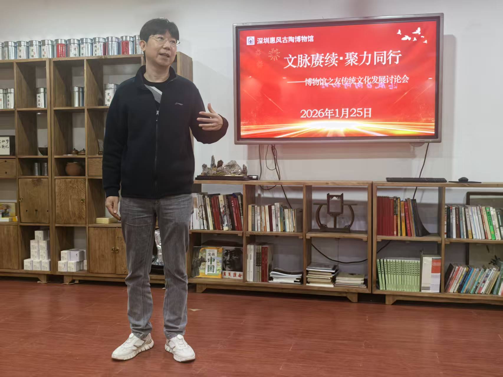 深圳新闻网2026年1月26日讯(记者 周锦春)1月25日下午,罗湖区惠风古陶博物馆多功能厅内人声鼎沸、暖意融融,掌声与喝彩声此起彼伏。《文脉赓续*聚力同行——博物馆之友传统文化发展讨论会》在此隆重举行。作为国家三级博物馆的惠民新举措,惠风拳馆开馆仪式、AI革命浪潮分享在此热闹举行。