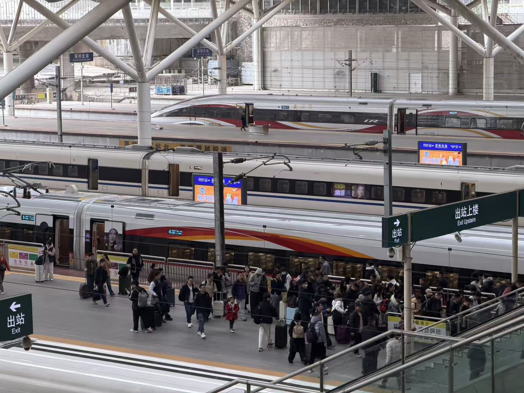 国铁各铁路局担当的所有过港列车升级为复兴号动车组,在速度、舒适度、智能化服务等方面全面提升,增强了长途高铁出行的吸引力,尤其对商务、旅游客流有显著促进作用。针对跨境客流增多,深圳北站、福田站力推“四通”服务:铁路通、深港通、粤语通、英语通,保障跨境旅客在购票、候车、换乘等各环节沟通无障碍。同时,进一步优化广深港高铁“灵活行”“计次票”服务的办理指引,通过清晰的标识和工作人员协助,帮助旅客实现便捷购票、改签,提升出行体验。
