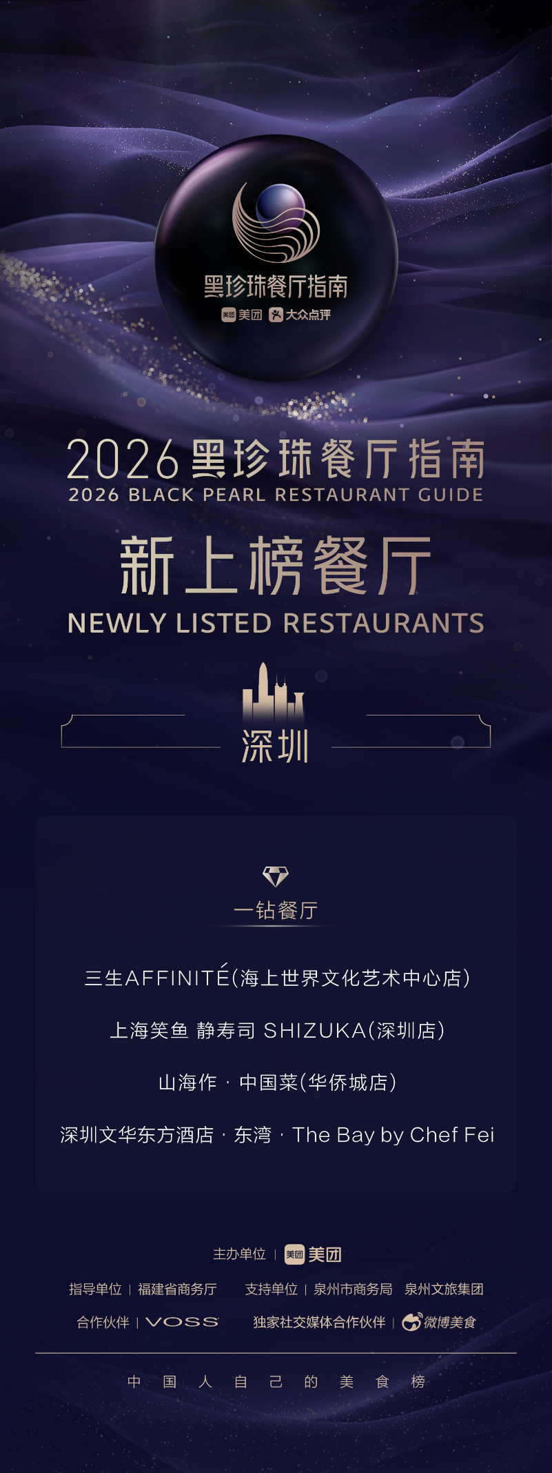 ● 1月27日,“2026黑珍珠餐厅指南”发布,深圳新上榜4家餐厅。