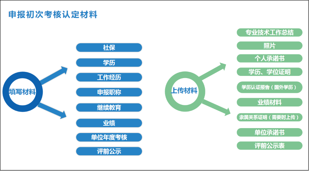 1.符合考核认定条件的申报人员,可在申报系统选择“初次职称考核认定”类型认定职称。用人单位负责对本单位申请初次职称考核认定的专业技术人才进行考核评议,职称评委会按照职责权限负责初次职称的认定,人力资源社会保障行政部门负责对职称评委会认定结果进行审核确认并发证。
