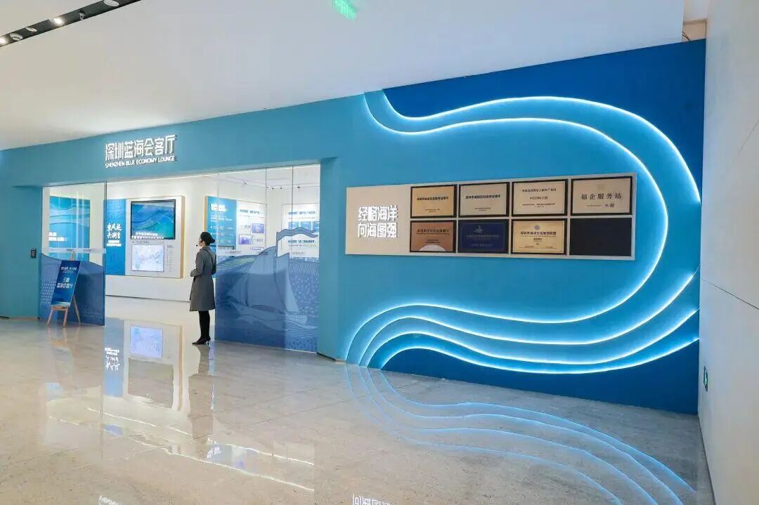 “蓝海会客厅”位于全市首个海洋经济总部楼宇内,集展示、交流、招商、孵化、科普等功能于一体,无缝衔接总部楼宇内海洋产业孵化空间、金融资源及行业网络,为企业提供多元空间、产业协同、行业交流、业务对接、要素保障等综合服务,构建全要素海洋经济服务生态,并设有常态化展区,生动呈现深圳市海洋经济规划、涉海企业科技创新成果,以及福田区因地制宜、突出优势助力深圳建设海洋中心城市的战略和举措。