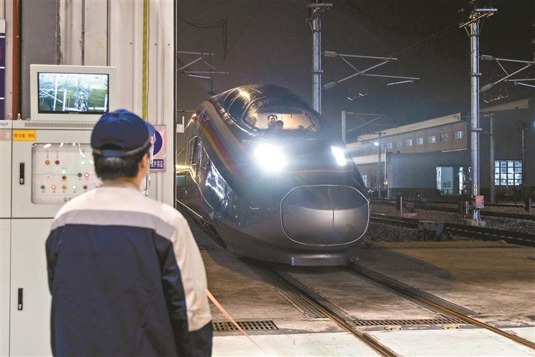 深圳新闻网2026年1月30日讯(深圳特区报记者程 赞刘羽洁)2026年春运大幕下周一即将拉开,夜幕下的深圳动车所灯火通明。这里没有旅客的喧嚣,只有金属的轻鸣、灯光的交响和一群身着深蓝工装的“动车医生”沉默而专注的身影。作为粤港澳大湾区规模最大的动车组检修基地,这里已全面开启“满格”运力模式,全力迎战出行高峰,筑牢高铁运输安全屏障。