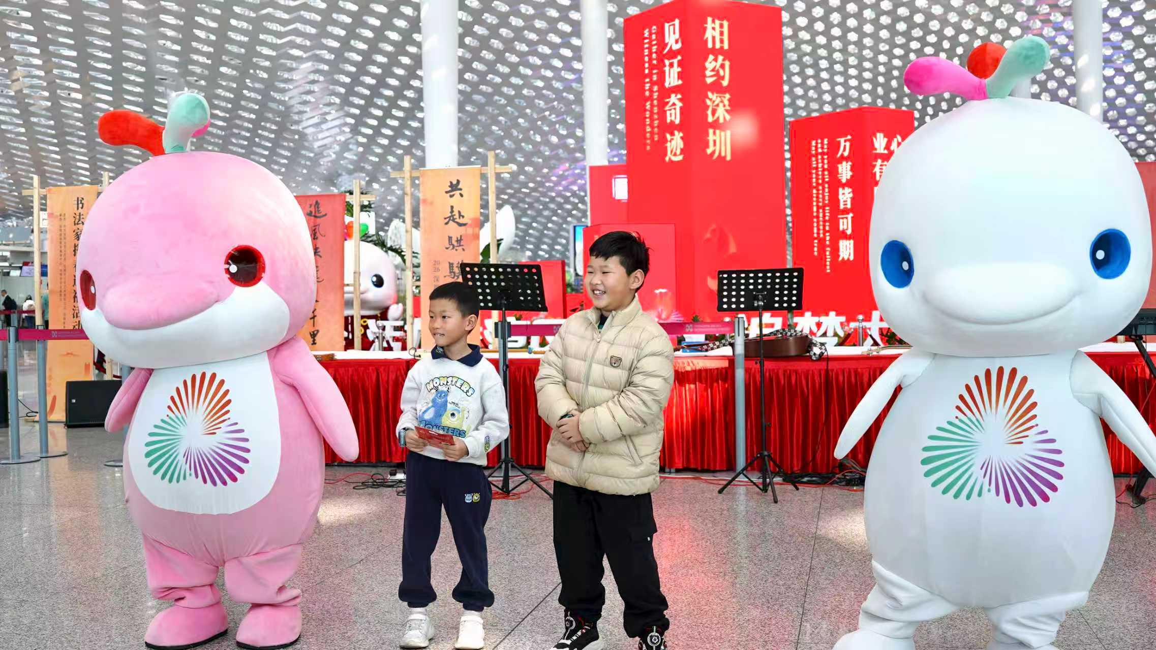 深圳新闻网2026年2月3日讯(记者 韩翔 通讯员 刘韶滨 邝颖瑄)春运首日,深圳机场“热气腾腾”,航站楼“换上新装”,处处洋溢着“以梦为马,福运同行”的主题;出发大厅客流量比平日已明显增加,旅客们“大包小包”或早早踏上返乡之旅,或外出旅游,一路欢声笑语;以“共赴骐骥年”为主题的楹联文化活动如约而至,书法大师泼墨挥毫,送上“文化年货”,活泼的“大湾鸡”人偶与小朋友们俏皮互动,深圳少年警营交警乐团文艺先锋队、深圳机场“地坪线”乐队、深圳机场音舞协会带来精彩表演,共同汇成了温暖的“春运图景”。