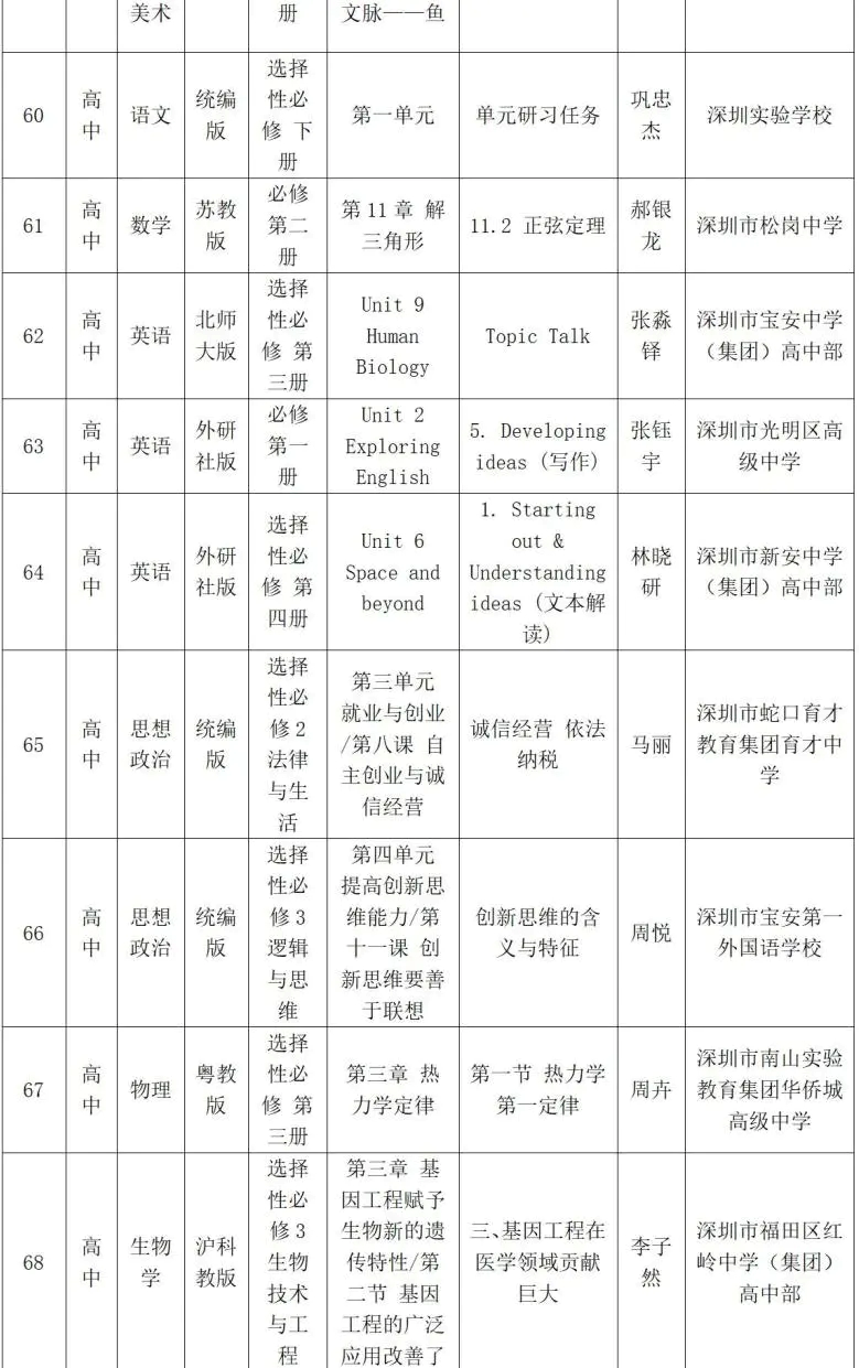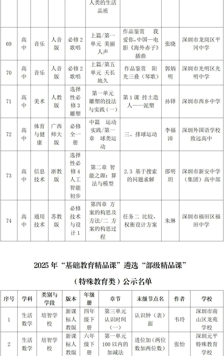 据悉,深圳103节课拟被评为部级精品课中,从类别看,入选课例覆盖面广、结构多元。其中,74节课拟被评为学科课程类部级精品课,集中体现课堂教学改革和学科育人水平;9节课拟被评为实验教学类部级精品课,彰显实践导向和探究特色;6节课拟被评为特殊教育类部级精品课,体现深圳在融合教育的探索成果。还有5节课拟被评为人工智能教育(义务教育阶段)类部级精品课以及9节课拟被评为阅读类部级精品课,反映出深圳在前沿教育领域和学生核心素养培育方面的持续发力。