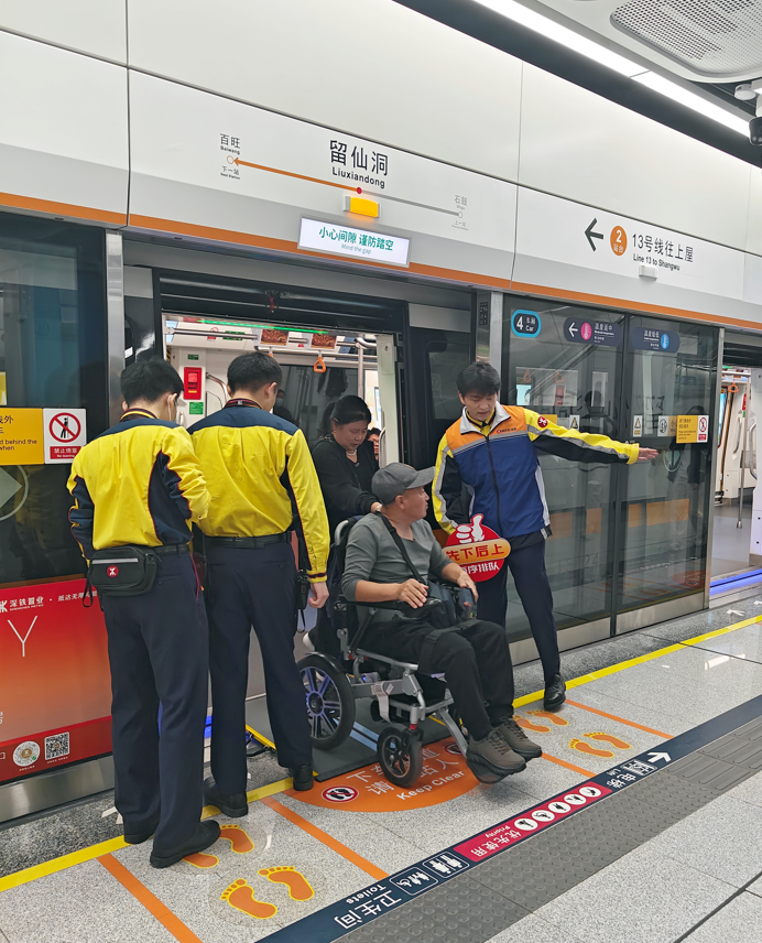 此外,港铁(深圳)还持续优化全龄友好的出行环境。4号线和13号线车站已实现无障碍设施全覆盖,包括轮椅坡道、盲道、无障碍电梯、无障碍卫生间、低位求助电话等。福田口岸站、上梅林站试点增设了电动轮椅应急充电服务,让轮椅乘客出行更从容。“信鸽服务”特别为长者与外地游客提供了“暖心指南”,工作人员可手写详细的换乘指引,清晰标注换乘站点与出站信息,让出行更加轻松。