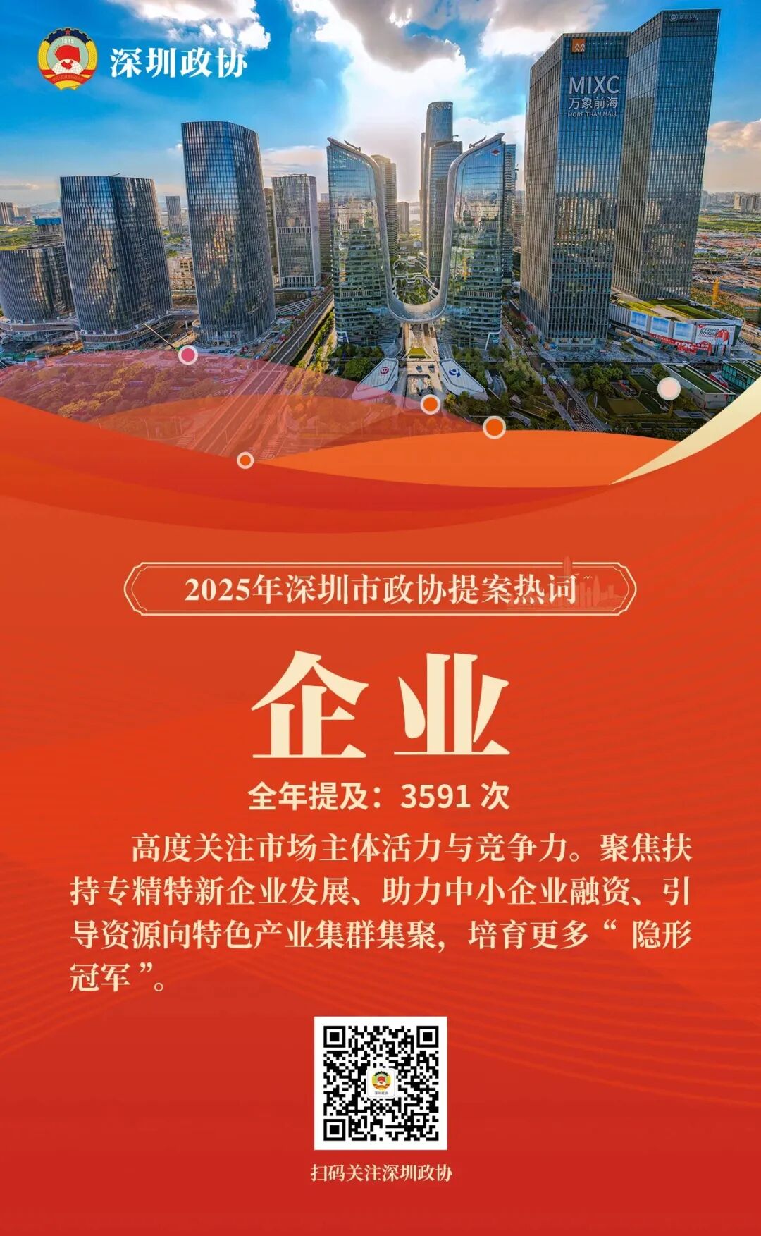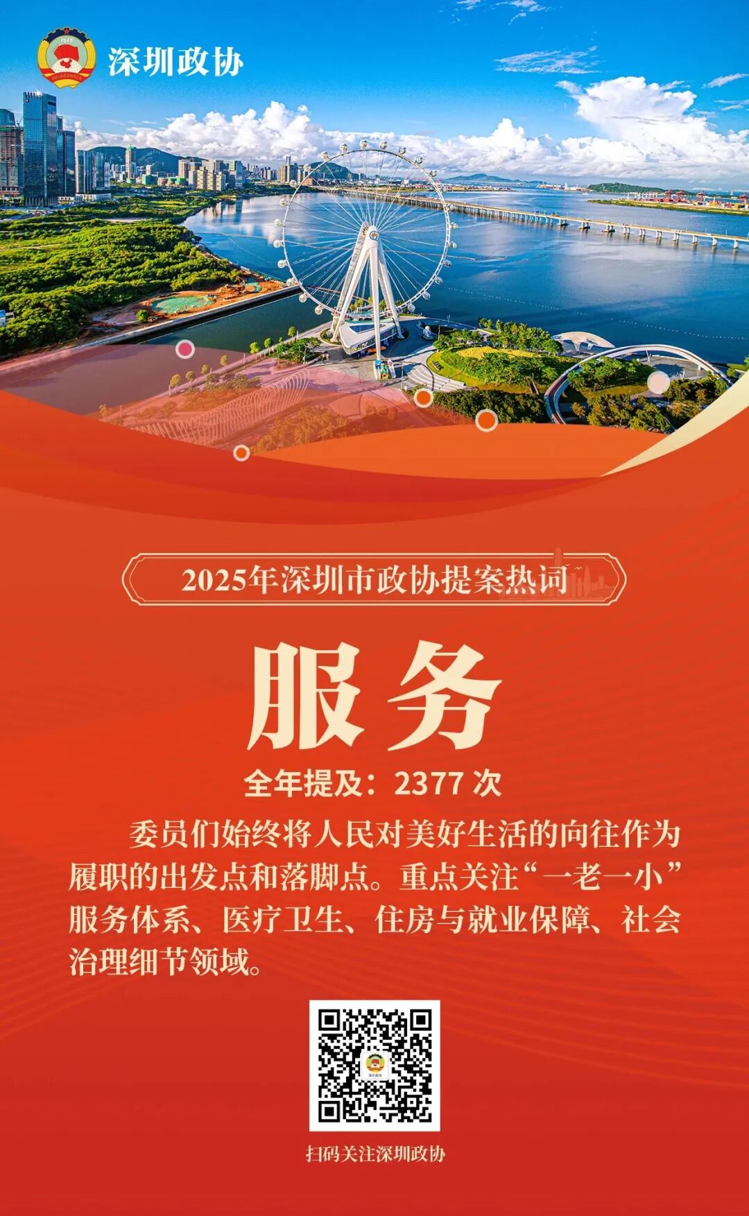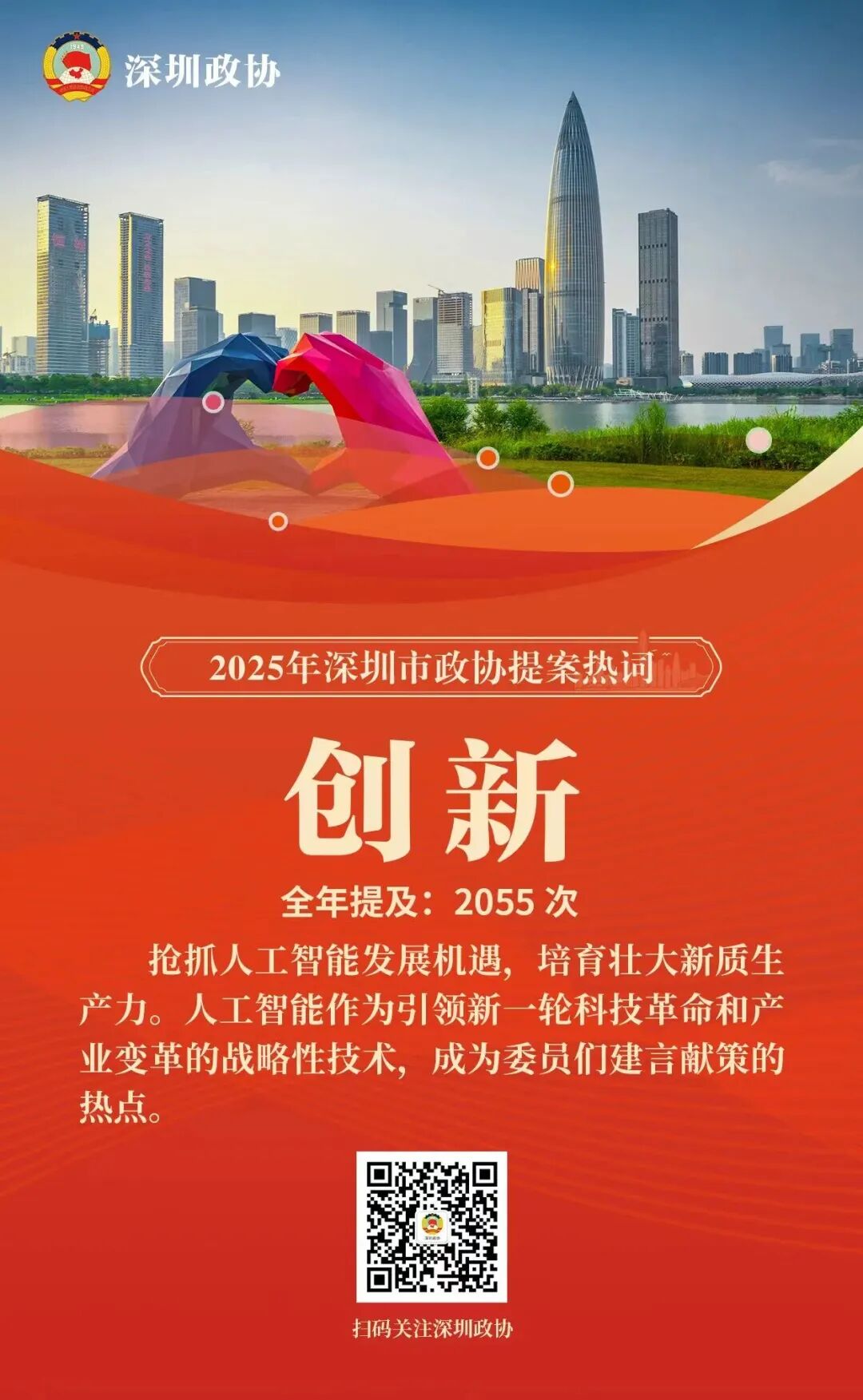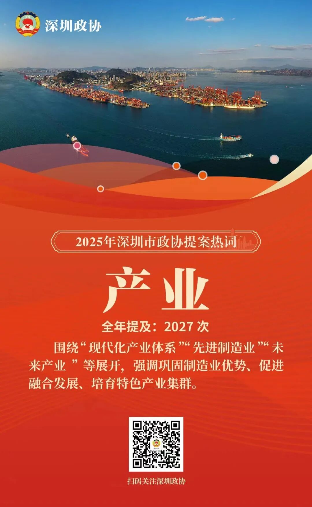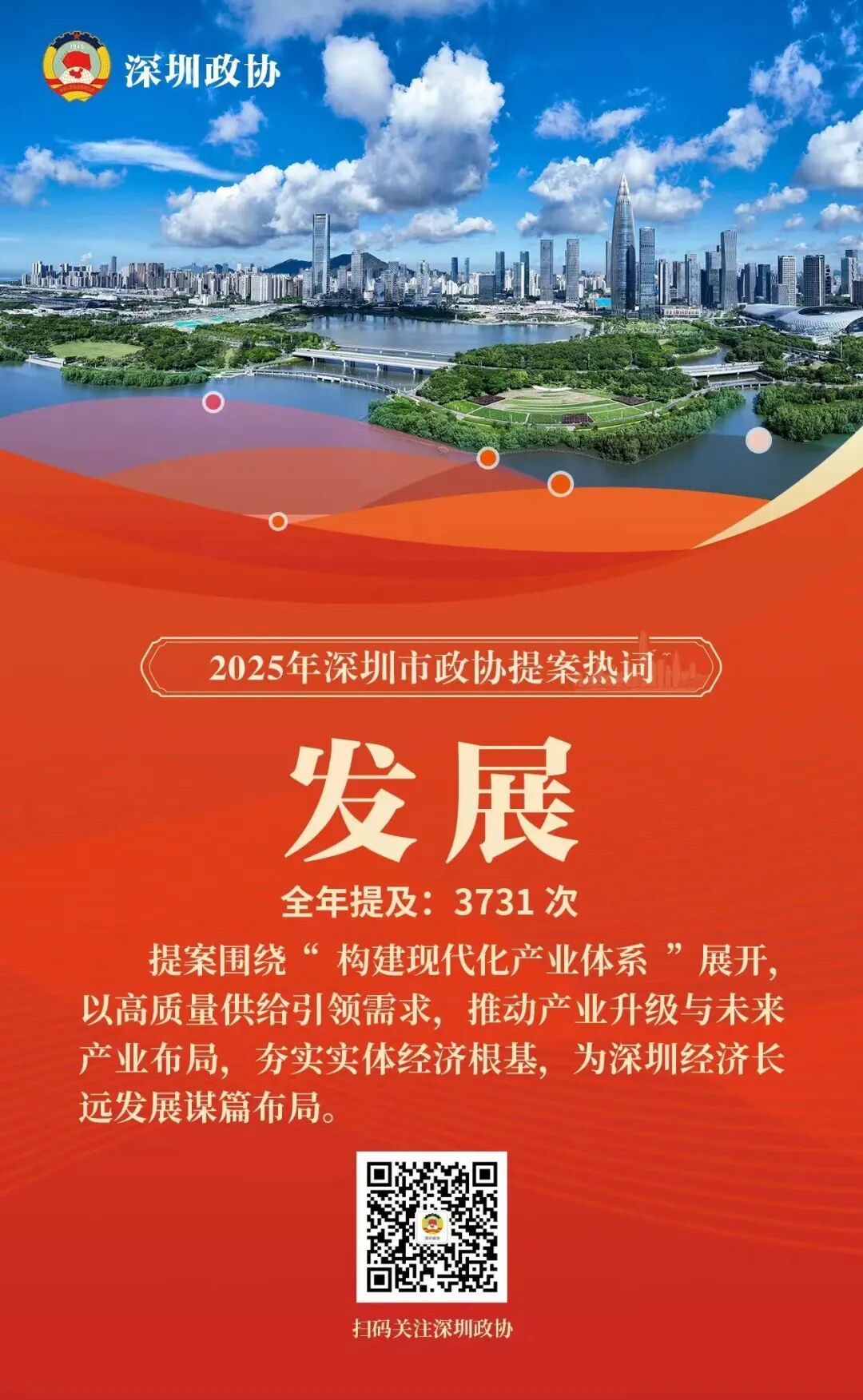 深圳新闻网2026年2月6日讯(记者 赵文硕 倪勋)2025年,深圳市政协对全年立案的649件提案进行了系统梳理与深度文本分析,并提炼出年度十大提案热词。分析表明,委员们的建言献策聚焦产业升级、科技创新、促进消费、民生保障、人才发展、区域合作、文化建设、生态治理等核心领域,精准回应了城市发展的战略需求与市民群众的普遍关切。这些热词如同一面棱镜,折射出委员们对城市高质量发展的深邃思考与积极建言。