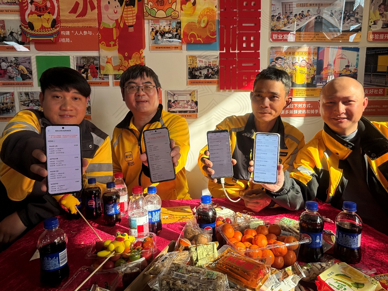 深圳新闻网2026年2月6日讯(记者 刘惠敏)“2026年第一笔补贴到账了,第二笔这几天也要发,今天又在现场拿到年货大礼盒,这个年收获满满!”骑手揭英强难掩喜悦,向大家晒出手机页面。2月5日,在深圳市委互联网企业工委、深圳市市场监管局、龙华区总工会、深圳市场监管局龙华监管局、龙华区互联网行业党委等相关部门的指导下,美团骑手新春表彰活动在深圳市龙华区美团骑手党群服务中心举行。骑手们济济一堂,相聚表彰联欢,现场向骑手发放年货特产及骑手专属文创礼包,更有不少骑手晒出新年的第一笔社保补贴到账页面。据悉,春节前,美团在全国各地举办多场新春联欢活动,近10万名骑手参与。