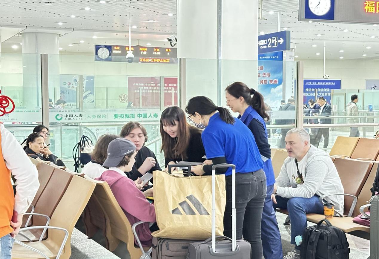 活动现场气氛热烈,工作人员以新年好运抽签的方式展开金融消费者权益保护宣教。在站外,不仅开设微型讲堂,系统讲解春运期间高发的诈骗模式、个人信息防护与资金安全守则,更通过发放图文并茂的宣传折页、提供一对一咨询答疑,将知识送达旅客手中。在站内,讲解内容紧密围绕返乡场景,工作人员借助“虚假票务代购”“假冒客服退改签”等典型案例,进行情景还原与步骤拆解,使防诈要点清晰易懂。一位准备回江西过年的张先生在聆听后表示:“原来那些‘抢票加速’链接背后有如此风险,这次提醒非常及时!”工作人员针对外国返乡群体开设一对一外语小课堂,切实提升少数群体的防骗能力。金融知识伴随着春运的人潮流动与温馨互动,融入了旅客的归途,化作一份无形的平安守护。