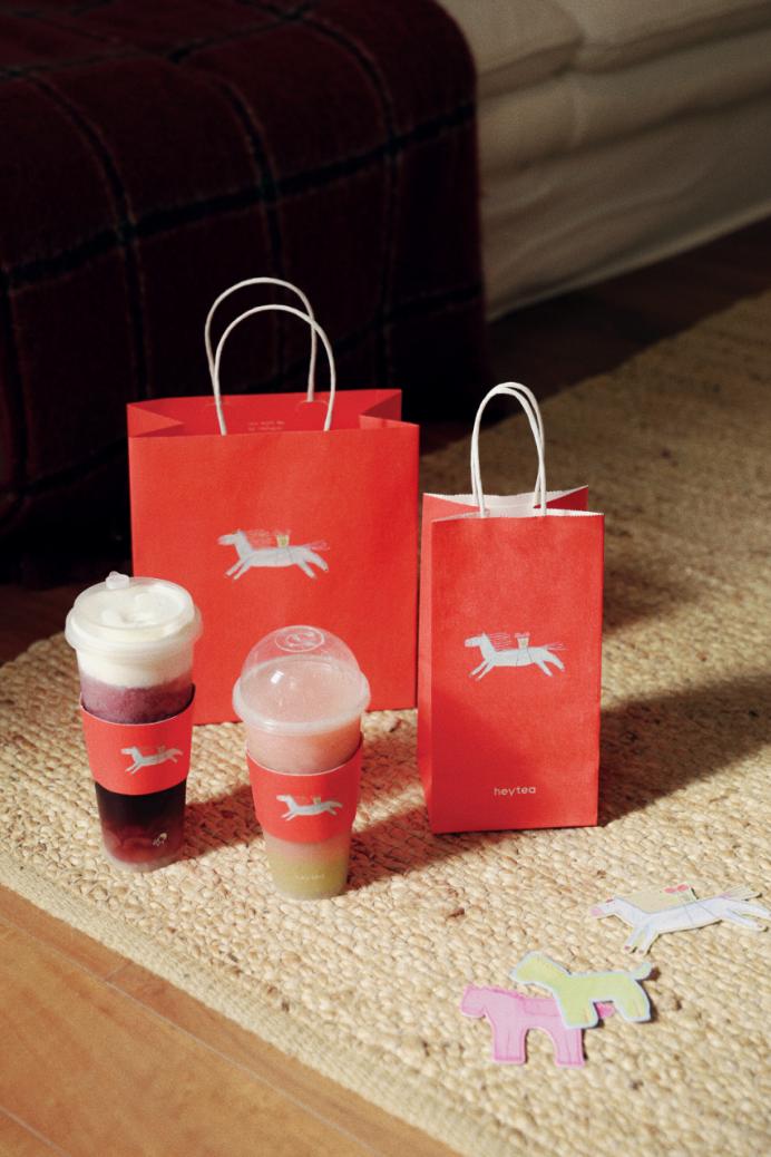 在活动中,喜茶邀请一直与“马”有不解之缘的马思纯创作了三幅不同形象的小马,并结合马思纯的手写祝福语,将其延展设计成为新春限定纸袋、杯套等包材,以及灵感小卡红包、冰箱贴、陶瓷杯、主题门店装饰等品牌周边活动。同时,通过主题店互动、DIY喜贴等特别活动,喜茶希望与马思纯一起邀请更多用户参与进来,以灵感创作的方式打开马年,开启新的自在旅程。