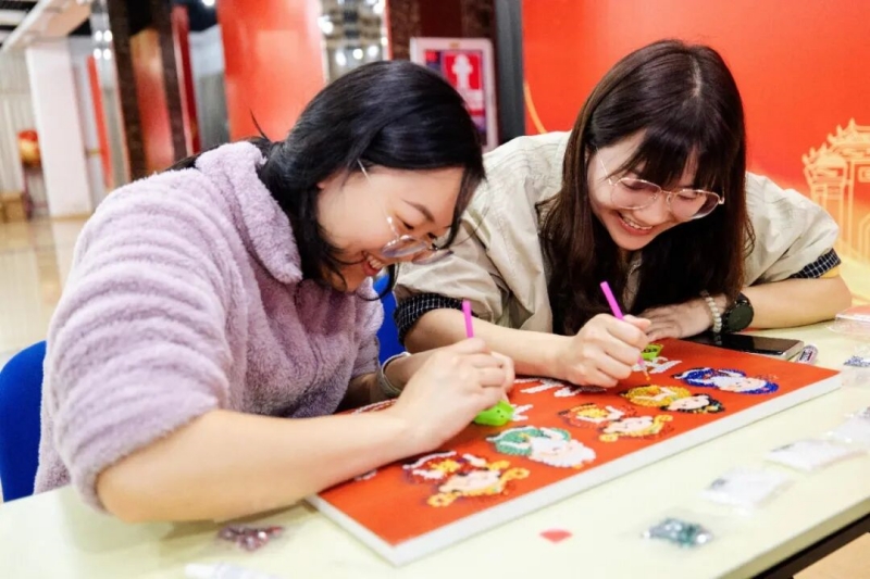 活动现场,青年们时而专注创作,时而轻声交流。在共同完成作品的过程中,彼此的了解不断加深,友谊的种子悄然萌芽。“我来勾勒轮廓”“我负责珍珠配色”“那我粘贴亮片点缀”……当一颗颗珍珠在指尖粘贴成画,当一张张笑脸在创意中彼此贴近,这场别开生面的新春活动,让深港澳青年在协作中感受湾区温度,在创作中共绘融合画卷。