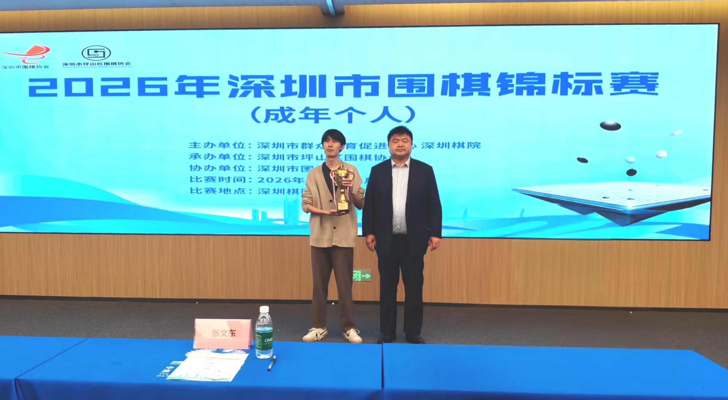 随着最后一轮比赛收官,赛事在温馨简朴的颁奖仪式中落下帷幕。荣获本次比赛前八名棋手分别是:冠军高天鹏、亚军周上琛、季军杨靖源、第四名斯塔斯、第五名陈俊宇、第六名史济东、第七名周乐萱、第八名舒心。深圳市群众体育促进中心主任职业九段张文东、全运会围棋冠军佟云、坪山区围棋协会会长马瑞民出席颁奖。