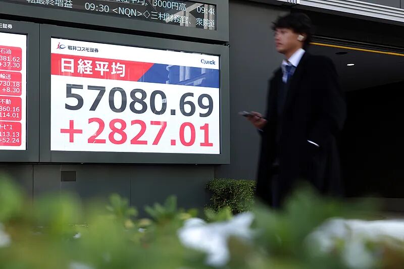 当地时间2026年2月9日,日本东京,一家证券公司外显示的日经225股票平均指数。日本首相高市早苗历史性的选举胜利提振了市场,日本股指期货飙升5.7%至历史纪录。图源:CFP