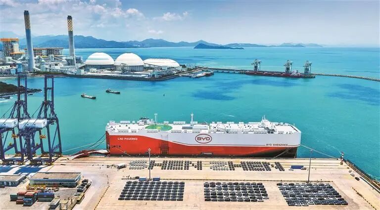 位于深汕特别合作区的小漠国际物流港,成为比亚迪新能源汽车重要的出海港口。 深圳特区报&读特记者 赖犁 摄