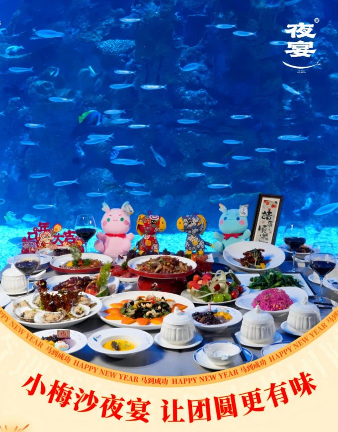 今年春节,小梅沙为深圳家庭提供了一个极具创意的团圆饭方案——“新春双海洋夜宴”。活动横跨除夕至元宵,将餐桌搬进了蔚蓝的海洋世界。市民可选择在海洋世界的“青蓝洞·珊瑚餐厅”或“鲸豚餐厅”用餐,一边品尝寓意“年年有鱼”的东星斑等佳肴,一边观赏白鲸与海豚的曼妙泳姿,套餐更包含合影留念及免票入园权益,性价比颇高。此外,海滨乐园的“潮悦食光餐厅”则主打游轮体验与围炉煮茶,让除夕夜伴随着海风与涛声度过。这种结合了美食、景观与亲子互动的沉浸式用餐体验,无疑将成为马年春节朋友圈里最独特的风景。