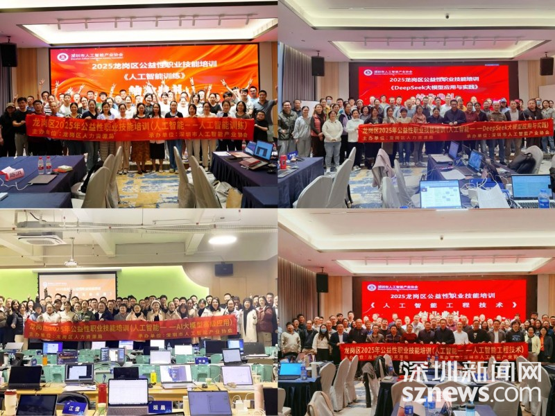 据悉,2025年下半年以来,龙岗区人力资源局立足区域产业发展需求,连续组织开展四期人工智能公益培训,逐步构建起“学工具、练实操、促进阶”三位一体的阶梯式人才培养体系。系列课程精准对接区内科技、制造、电商、新媒体等重点产业发展需求,面向企业员工、技术开发者、社区居民等多元群体开展针对性培训,累计参训人数超200人次。培训坚持科学分层、精准施教原则:《人工智能训练》课程聚焦数据标注、清洗等基础实操技能培育;《DeepSeek 模型应用与实践》课程专为零基础学习者打造,系统讲解主流AI工具的实操应用;《AI大模型高级应用》《人工智能工程技术》课程则面向技术开发者群体,重点提升其大模型调优、系统集成及工程落地能力。