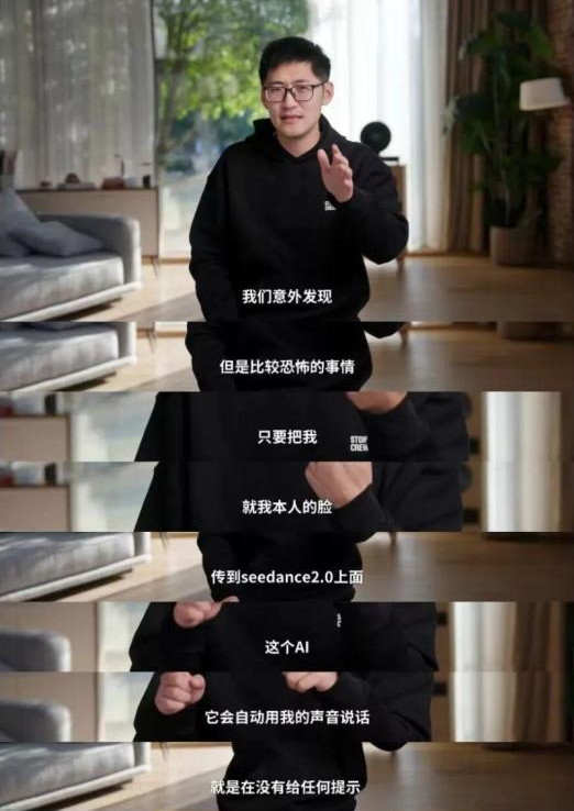 就在技术狂欢达到高潮时,一个测试结果为这场盛宴按下了暂停键:科技博主Tim发现,仅上传一张个人面部照片,Seedance 2.0就能生成高度相似的声音。