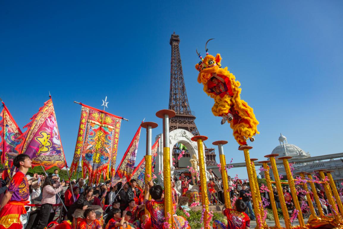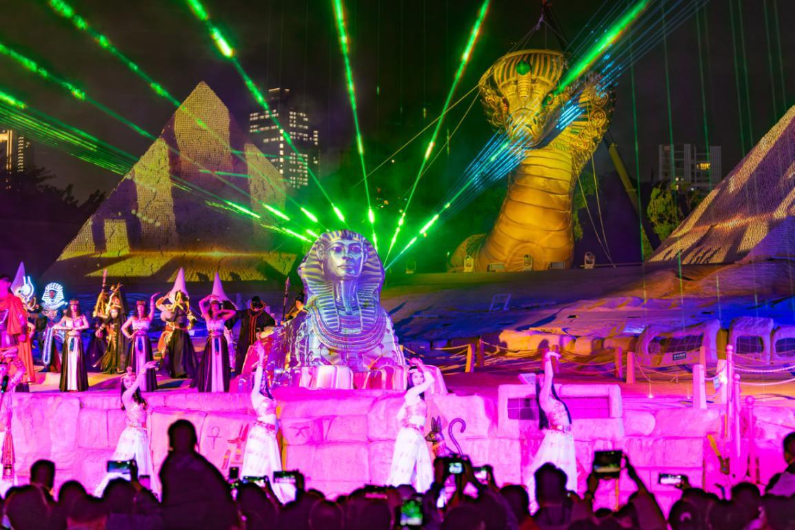 此外,景区演艺重磅升级,多台大戏连番上演。世界文化史诗系列第二部曲科幻实景剧《埃及艳后》新春上演,以多元的舞美表现手法融合未来科技,在埃及古文明与科幻对话中,感受不一样的沉浸观演体验;世界文化史诗系列开篇巨制《拿破仑传奇》新春精彩继续,带领观众穿越历史,感受巴洛克舞蹈的热情,更搭配了九天的喜庆“黄金气球雨”,给游客们带来满满热情。全景歌舞剧《Love Show》《泰姬陵恋歌》《非洲奇遇记》等世界风情演艺也将在春节期间加场,为游客提供一站式领略全球文化的体验。