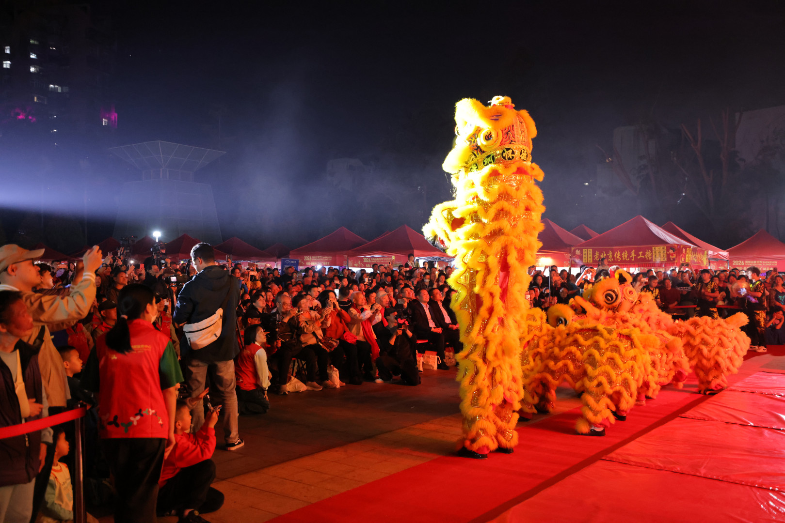 开场舞狮《瑞狮呈祥马到成功》率先登场,福永街道怀德醒狮团的表演者身披彩狮,腾跃、翻滚、采青,威风凛凛的姿态引得现场掌声雷动、喝彩连连;侨香社区侨香民乐团的民乐合奏《闹新春》《赛马》,旋律激昂欢快,奏响了新春的喜庆乐章;石厦社区石厦粤剧粤曲欢乐团的《荔枝颂》,唱腔婉转悠扬,尽显岭南文化魅力;龙岗南岭村社区心灵之声合唱队的《萱草花》,温柔旋律里满是温情,让不少观众眼角泛起泪光。