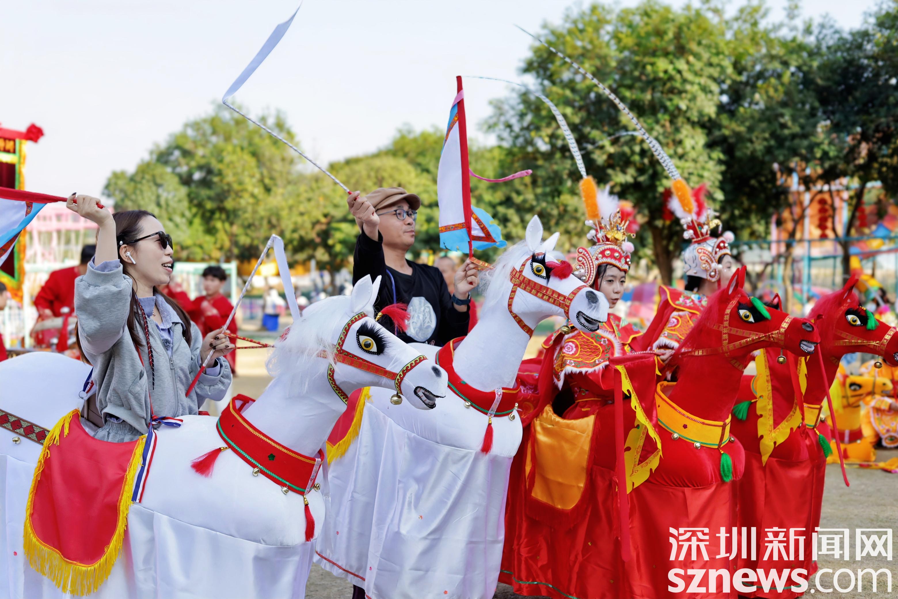 本次文化节将隆重呈现广东省级非物质文化遗产——饶平布马舞。这项源于宋末元初、传承七百余年的民间艺术,将于马年新春焕发时代新彩。伴随着气势恢宏的潮州大锣鼓,彩衣舞者将策“马”奔腾,沿奶牛广场经七彩乐园巡游至青青草原,绘就一幅流动的民俗画卷。游客既可观赏经典剧目《穆桂英挂帅》的飒爽英姿,亦可亲身体验布马互动,更有真马同游,共庆吉祥马年。