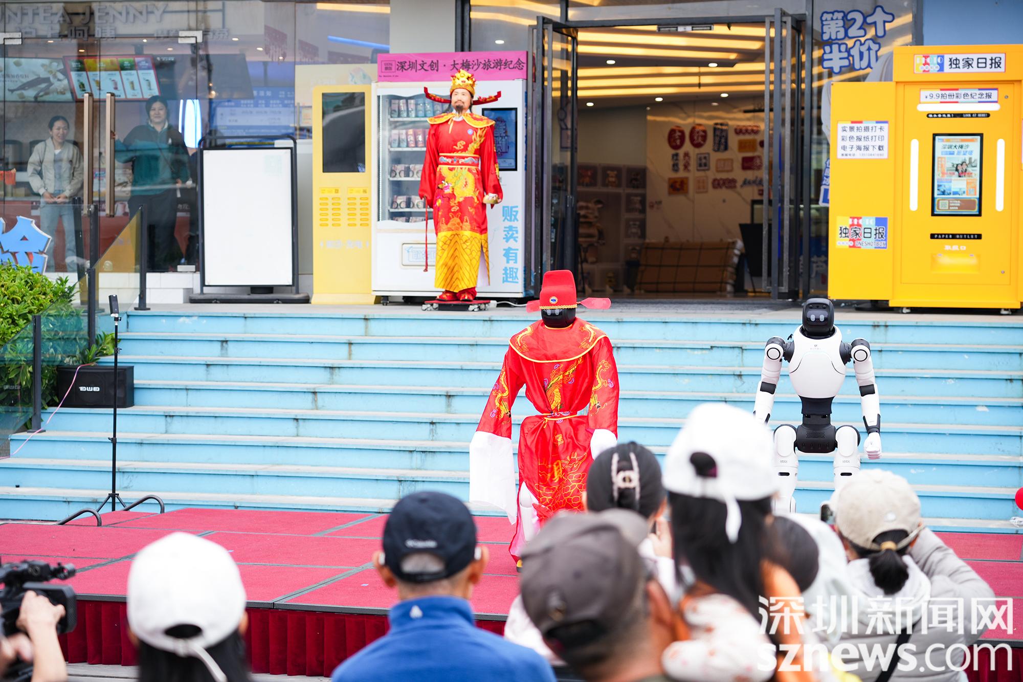 “各位来宾,欢迎来到大梅沙,这里是‘新春未来奇遇’的现场!”上午10点18分,剧场首场演出准时开启,机器人主持身着红马甲,用响亮的声音热情开场,还不时与台下观众互动,憨态可掬的模样引得阵阵掌声。