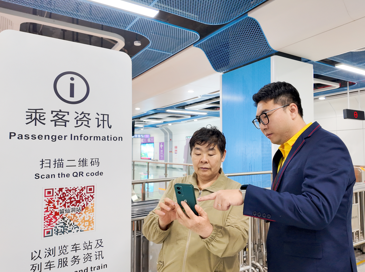 港铁(深圳)站长王强为乘客提供查询指引服务,帮助乘客顺畅出行。