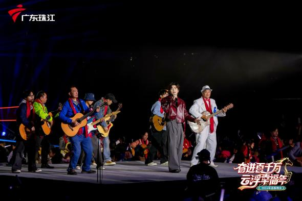 百名本地吉他爱好者组成最动人的背景和弦,与本土人气乐队同台,唱出每个云浮人的自豪之情。大屏同步闪现新农人奋斗面孔,共鸣拉满。