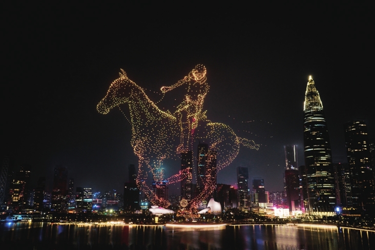 2026年2月13日晚上,千架无人机升起点亮深圳湾夜空,Ralph Lauren 拉夫劳伦以“策马逐梦”光影秀,献礼农历马年。金色骏马踏水而来,马球骑手凌空挥杆,经典小马 标志 璀璨绽放。Ralph Lauren 拉夫劳伦追梦精神与深圳创新基因同频共振,以科技演绎优雅,以光影致敬梦想,与这座城市共赴美好未来。