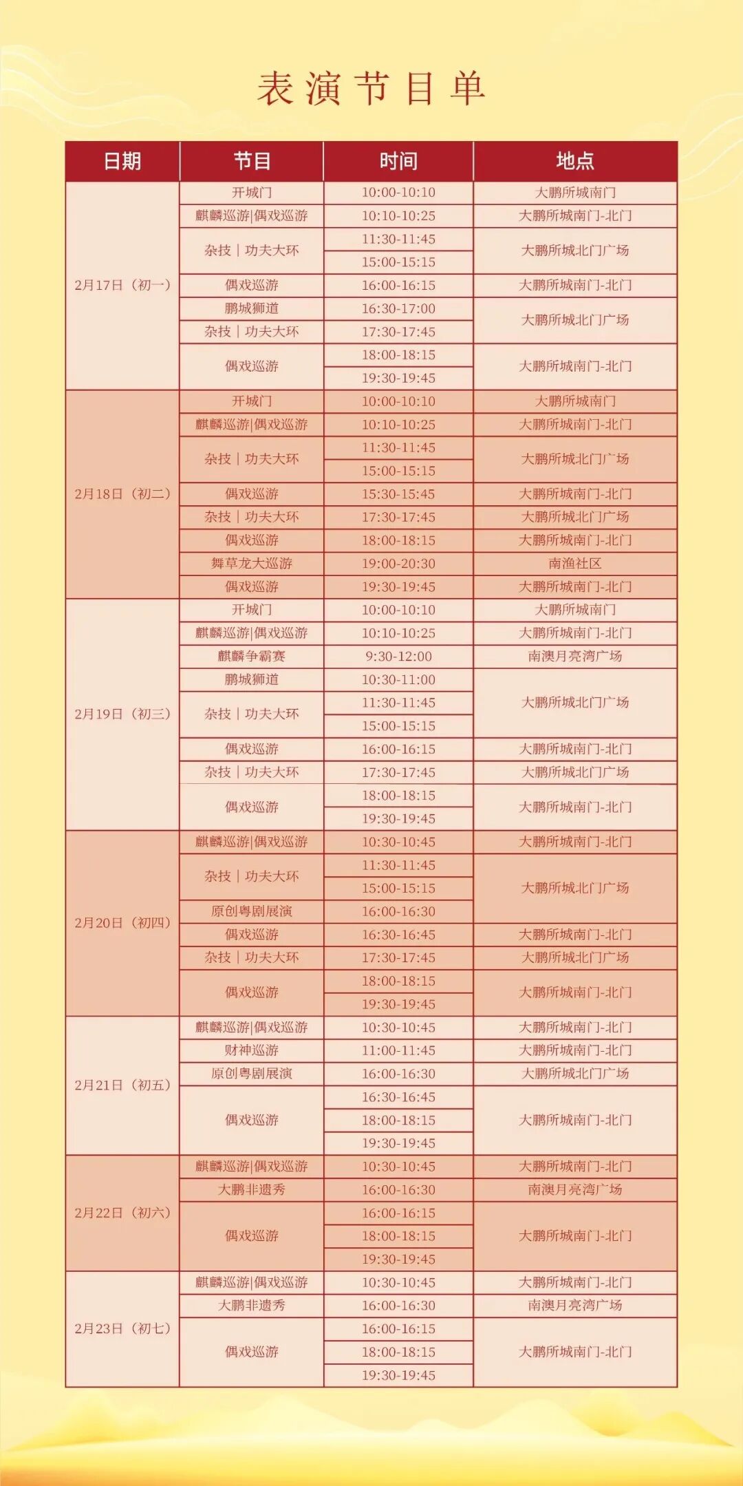 ● 大鹏:从大年初一到初七,50多场演出活动轮番上演,大鹏新区新春大戏即将开场!