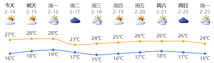 深圳今日多云间晴天;气温16-27℃;东南风2-3级;相对湿度55%-95%。