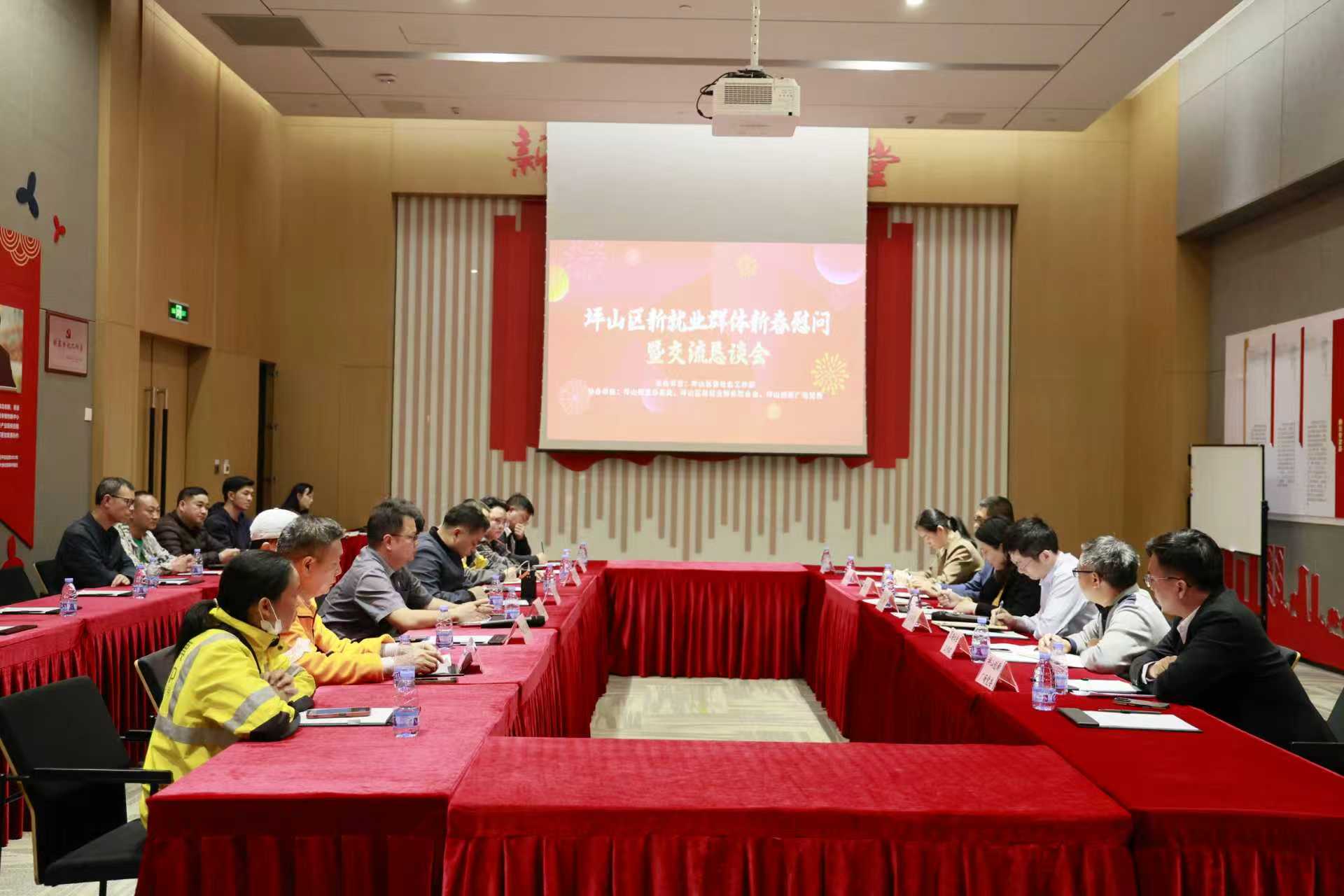 在随后召开的交流恳谈会上,来自美团外卖、小象超市、淘宝闪购等平台的20名新就业群体代表及站点负责人,结合自身在坪山的工作生活经历,畅谈心声、建言献策,详细讲述了奋斗路上的收获与困惑,就业保障、服务提升、权益维护等方面提出了针对性意见建议。坪山区委社会工作部主要负责人,区交通运输行业党委、坪山街道办事处、创新广场党委、新就业群体联合会等相关单位负责人参加座谈,一边为代表们送上节日祝福和慰问物资,一边认真倾听诉求、细致解答疑问,耐心回应大家在工作生活中遇到的难点堵点问题,切实把关怀送到心坎上、把服务落到实处,搭建起政企良性互动的“连心桥”。