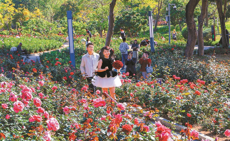 2月14日,深圳各区婚姻登记处迎来结婚登记高峰,众多新人选择在这一天领证,带着“红本本”甜蜜回家过年。据统计,当天我市1050对新人喜结良缘。这是一对新人领证后漫步花海。