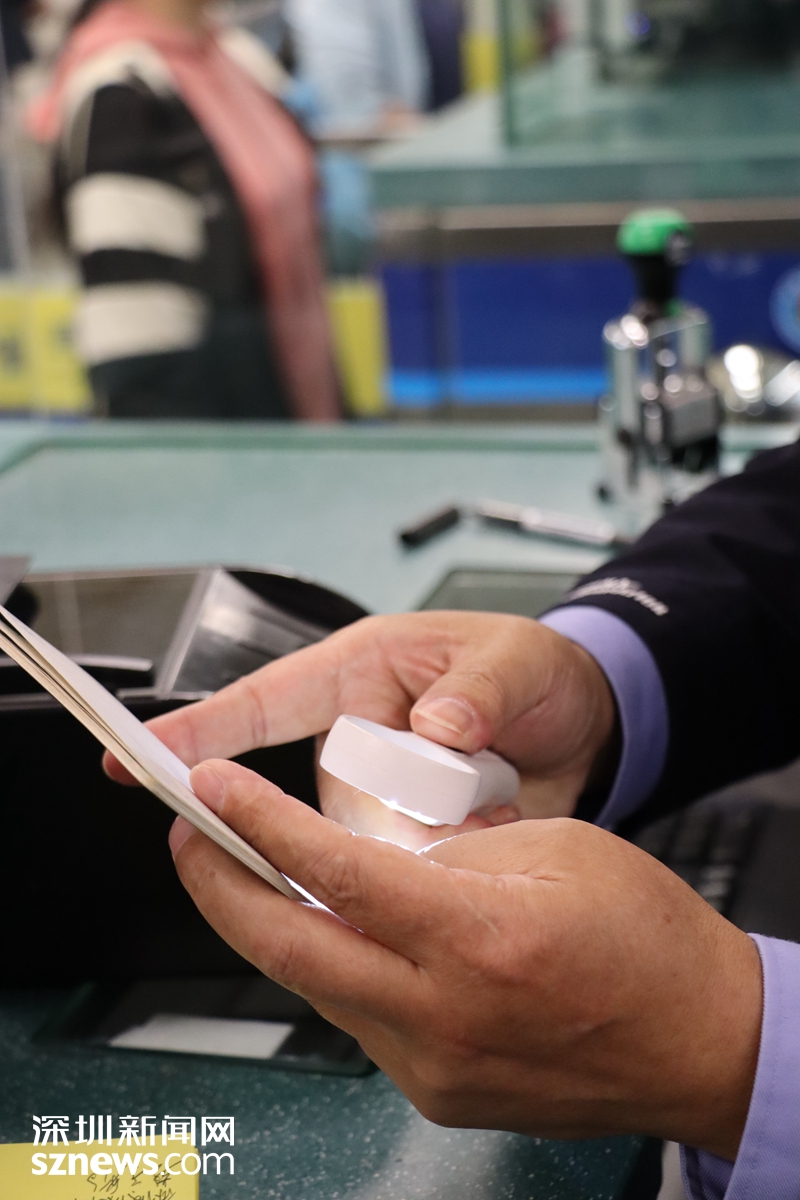 两位摩洛哥旅客从深圳福田口岸出境,他收下旅客递过来的护照,点头致意欢迎,“Welcome to China”,开始全神贯注查验护照和旅客信息。在数字化查验主流的今天,这“三件套”看似老旧,却承载着一种温度与精度并存的守护——在细微处倾注全部的专业与敬畏。