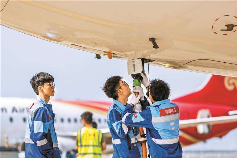 ③ 深圳机场地面保障团队对航班进行检查。