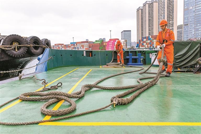 ④ 华舟盐田港拖船员工在进行拖船作业准备。
