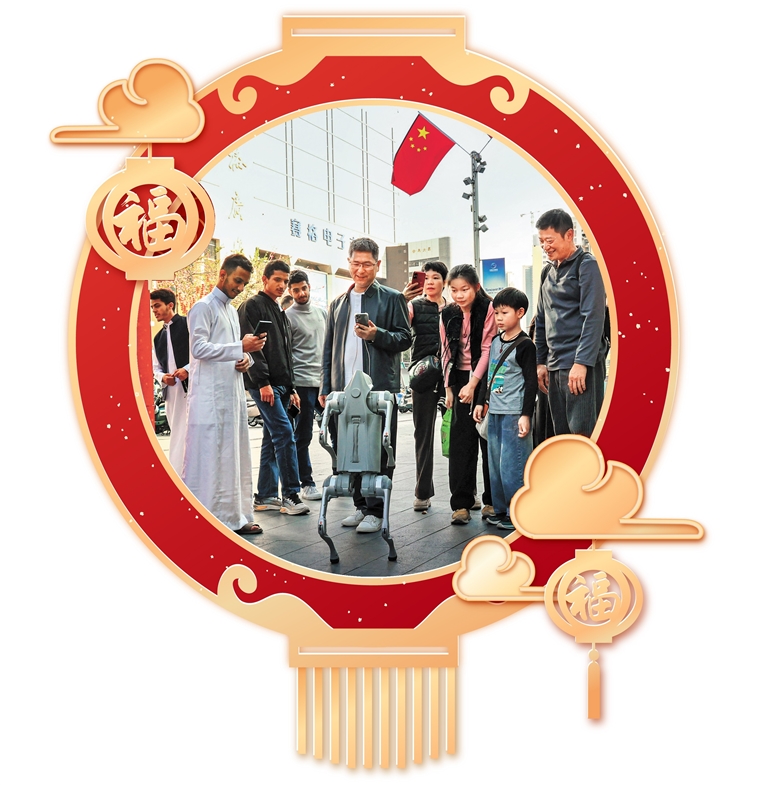新春的华强北,开放联通世界。商圈日均客流75万人次,超7000名外籍客商来自183个国家和地区,在华强北过年的外国客商占比同比提升50%。240小时过境免签政策,让海外采购商实现商务考察与新春体验无缝衔接。华强北一站式供应链高效便捷,货品“一周出海”,日均发件超300万件,四成发往全球,年货货值突破千亿元。中外群众共写春联、同剪窗花,浓浓年味与全球商机交融。