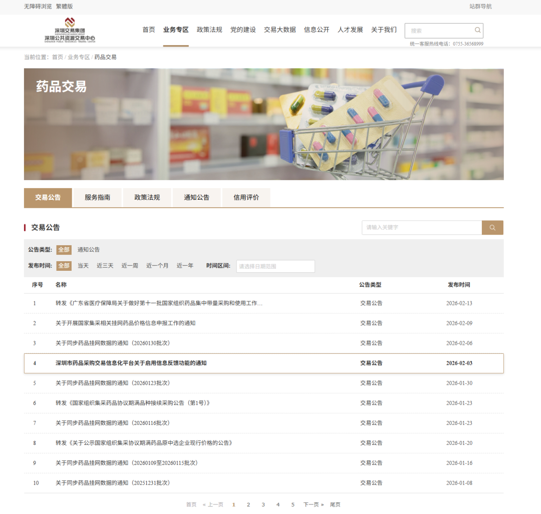 成功承接全市药品交易业务,实现新旧平台无缝衔接、平稳过渡,高效构建药品与医用耗材全品类上平台服务生态。全新上线“深易保险”服务板块,深易金服平台综合性金融生态正式成型,推动营商环境优化。成功探索危废涉案物资公开拍卖,激活要素市场化配置效能,保障罚没物资处置效率。打造并正式上线博士后创新创业成果展示交易平台。