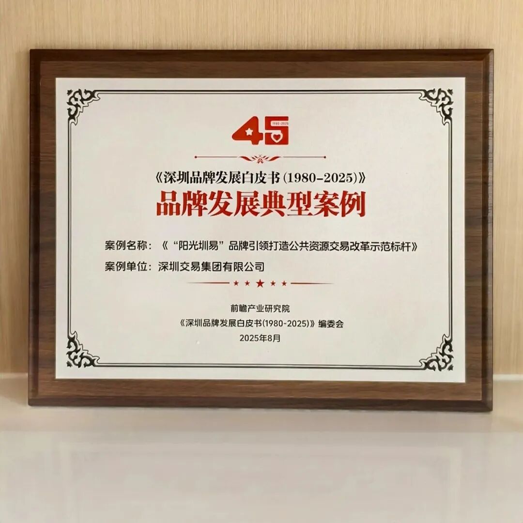 丰富“阳光圳易”党建工作体系,党员队伍建设课题成果获评“2024年度全市组织工作‘十大课题’优秀奖”。4个典型案例入选市委组织部、市国资委党委《深圳基层党建和社区工作典型案例》。《“阳光圳易”品牌引领打造公共资源交易改革示范标杆》入选深圳45年品牌发展典型案例,获得2025年深圳品牌创新成果优秀级。数字化转型赋能发展实践案例入选深圳国企党建研究会年度课题汇编。高质量举办第六届廉洁文化节,制作20则“动漫说纪”系列微视频和主题漫画作品,获市国资委展播。民主管理实践入选广东省总工会企事业单位民主管理典型经验培育成果,推报省级和市级“工会爱心妈妈小屋”1家,获评市总工会五星级工会,获市关爱行动“年度爱心企业”和“深圳书香企业”荣誉。获前程无忧2025杰出雇主、猎聘中南区2024年人力资源卓越贡献奖、智联招聘2024中国年度最佳雇主深圳50强(位居榜单第6)多项雇主品牌奖项。微电影作品获第十三届全国品牌故事大赛三等奖、深圳赛区优秀级奖项,品牌案例获“2025年品牌创新成果”专业级奖项。