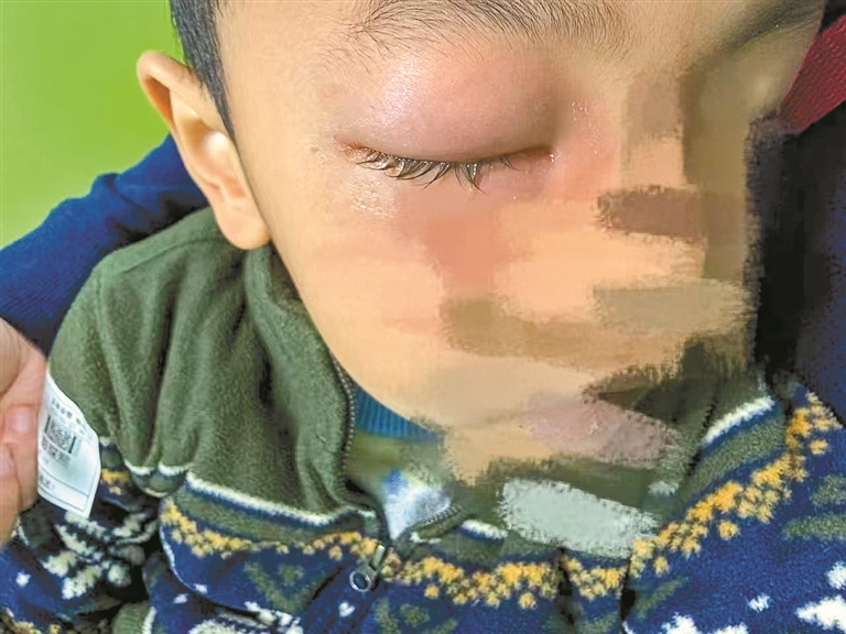 小凯的右眼肿到无法睁开。 受访单位供图